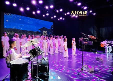 不仅如此,大红礼娱自运营以来,陆续有艺术类学生家长、艺术爱好者、相关机构等来咨询场地合作。“舞台实践”是艺术表演行业的重中之重,许多从业者、实践者、爱好者在大红礼娱举办戏剧、音乐会、舞蹈、曲艺等各艺术门类的舞台展演。除了场地的硬件设施,大红礼娱的工作人员还会提供艺术专业上的服务。从合光、调音到发声、站姿,甚至后台礼仪,助力每一位表演者都能有最佳的呈现和体验。许多表演者的自信姿态,都定格在入门走廊巨大的“照片墙”上。这里有近千张照片,记录着演员精彩的定格镜头、观众情绪释放的畅快表情。孩子们神采飞扬、豪情满怀的瞬间,让许多父母热泪盈眶,一位学钢琴孩子的母亲说:“没想到这里会有这么好的呈现效果,孩子在台上表演的时候,整个人都散发着光芒,我们非常激动!”