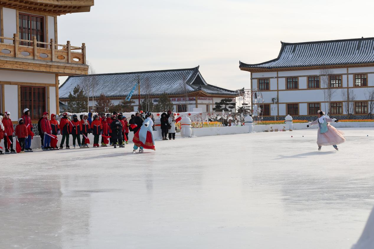 在党群服务中心广场,15名旗手手持8面冰超活动主旗与6面赤色刀旗规整列队,旗号在寒风中猎猎作响。朝鲜族歌伴舞《很快乐见到你》温情演出,香甜歌声传递着桦川公民的热情好客。跟着《黑龙江省冰雪运动超级联赛(佳木斯站)宣传片》播放完毕,冰超设备发动,这场集竞技、文娱、文明于一体的冰雪盛会正式拉开帷幕。