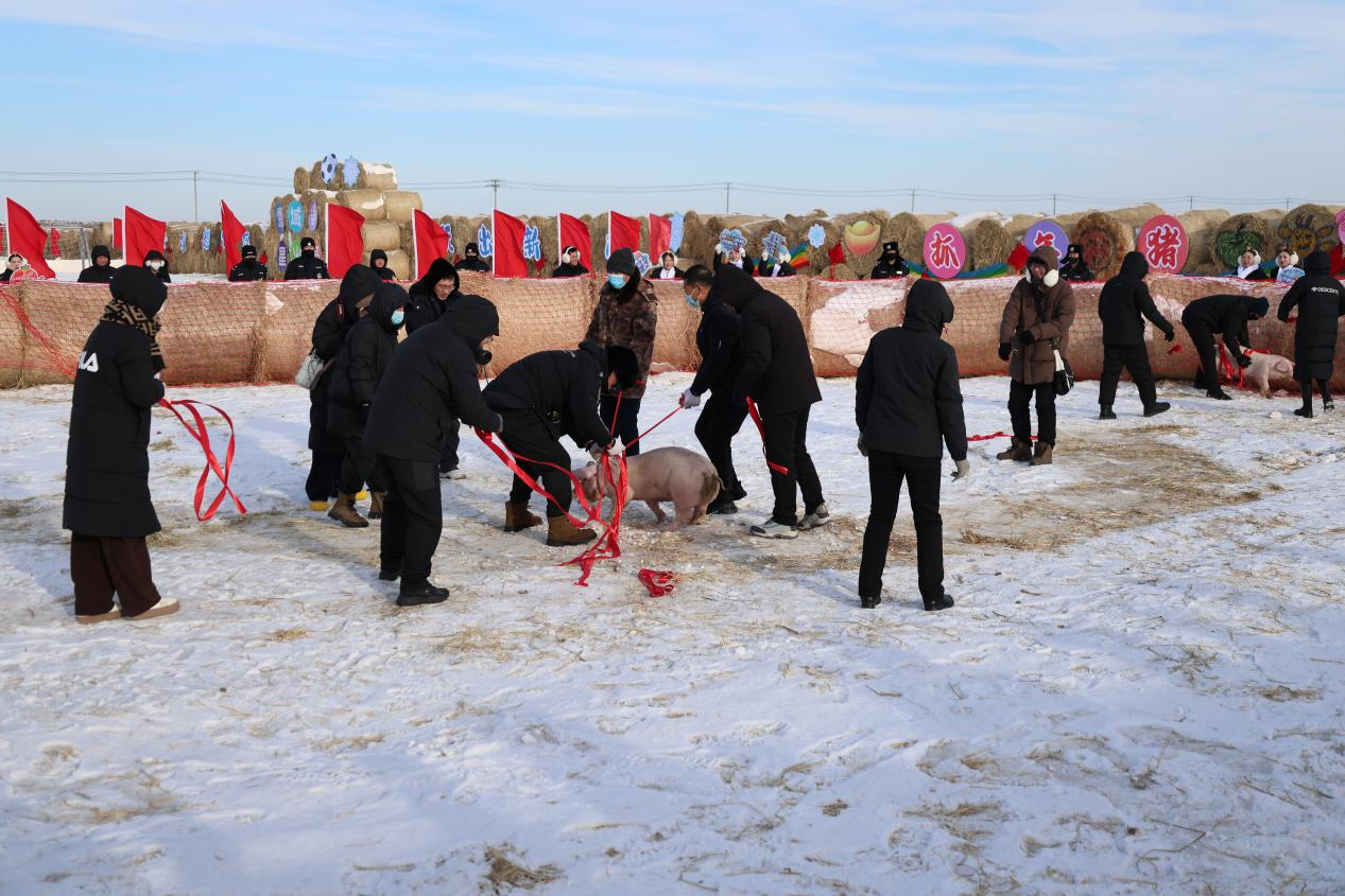 冰坑逃脱应战赛严重影响,参赛选手四肢并用奋力挣脱“冰坑”,围观加油声此伏彼起;“抓年猪·品年味”活动充溢乡土气息,活蹦乱跳的年猪在雪地上奔驰,游客们积极参加抓捕,幸运者捧着新鲜猪肉奖品乐开了花。两口大锅旁,杀猪菜热火朝天、香气浓郁,肥而不腻的地道东北年味,让人们在冰雪国际中感触舌尖上的温暖,更有东北秧歌舞出热烈喜庆气氛。