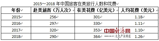 今年6月5日,文化和旅游部新闻发言人援引美国国家旅游办公室公布的数据说,2018年中国赴美游客约300万人次,消费约300亿美元。按此测算,人均花费约为1万美元。