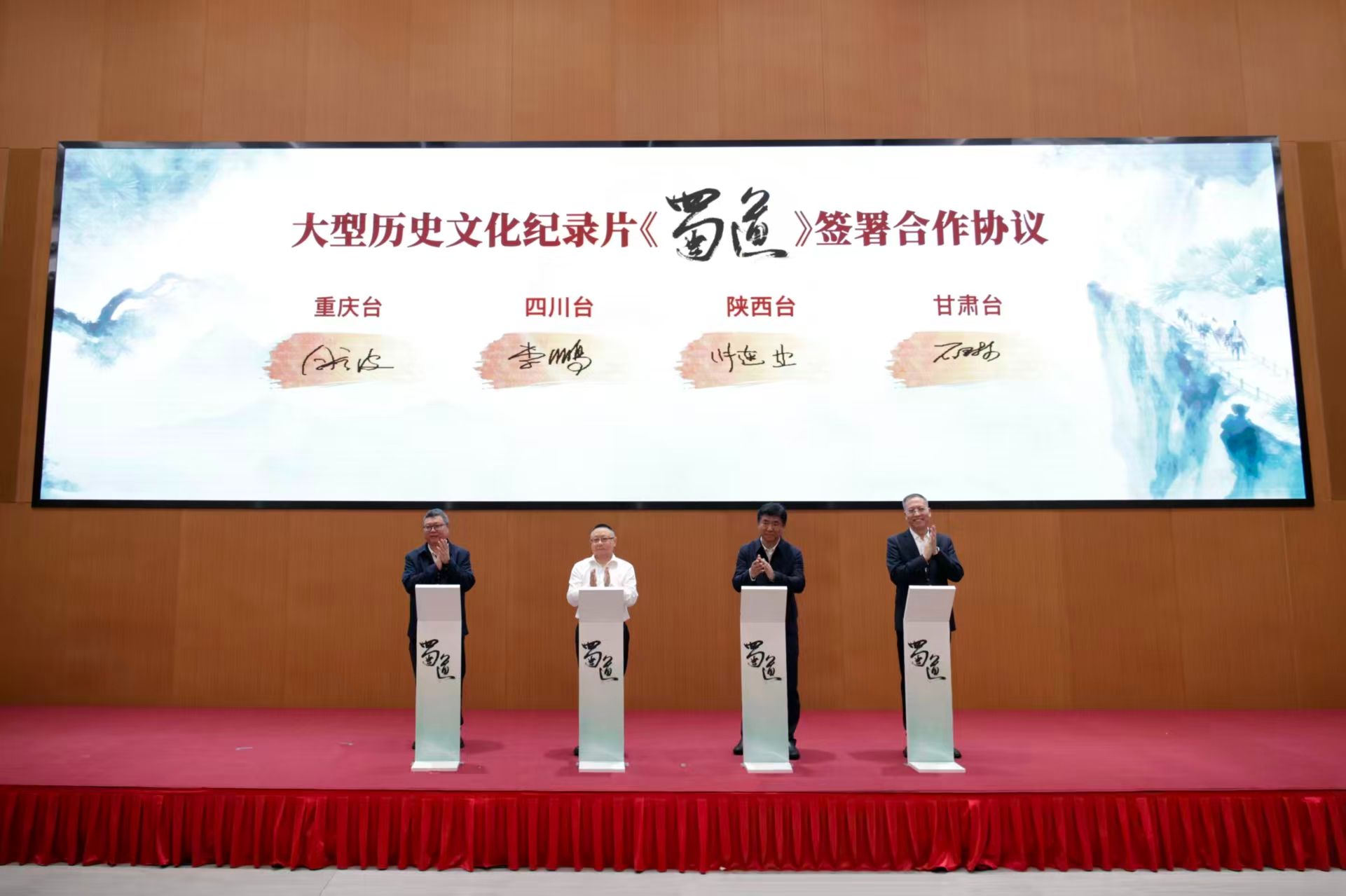 4月16日,由四川播送电视台牵头,联合陕西广电融媒体集团(台)、甘肃省播送电视总台、重庆播送电视集团(总台)一起出品的大型前史背景和文明纪录片《蜀道》在成都开机。四川省委宣传部副部长,省广电局党组书记、局长李晓骏在致辞时表明,四川作为项目建议方,将全力推动项目拍照制造,等待主创团队以匠心打磨精品,把蜀道的厚重见识与年代价值出现给全国观众。开机典礼上,四川、陕西、甘肃、重庆四省市台现场签署项目联合出品制造协作协议,并共拓“蜀道长卷”,为纪录片拍照按下发动键。